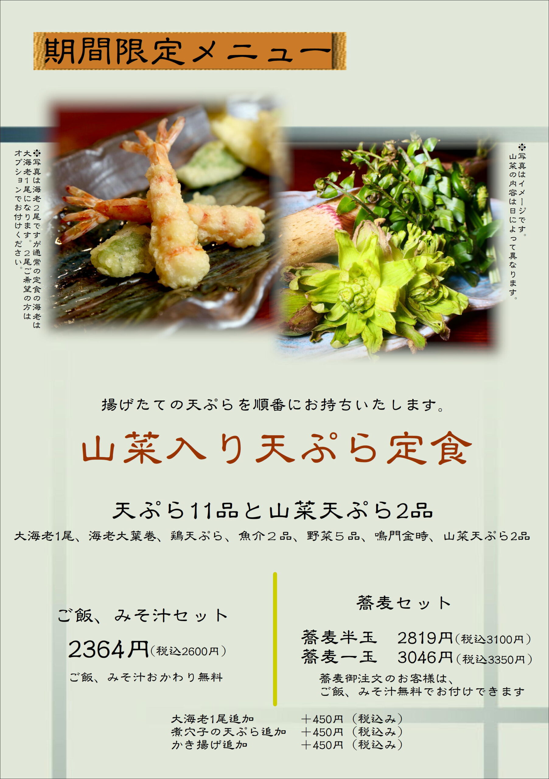 定食スぺシャル・天ぷら定食・お昼のコース に付いております。